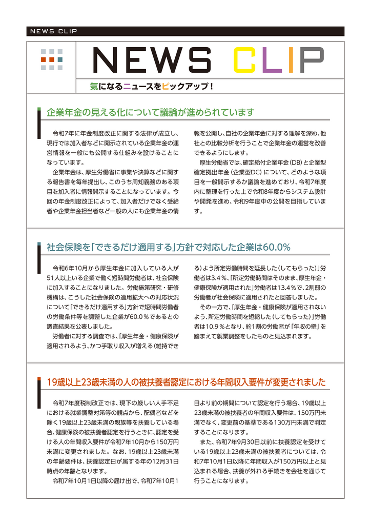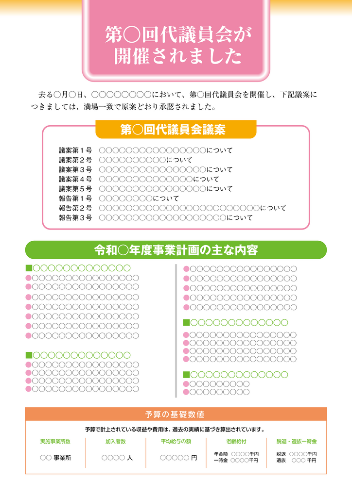 豊富なラインナップから記事を選んで組み合わせれば、広報誌が簡単に作成できます。